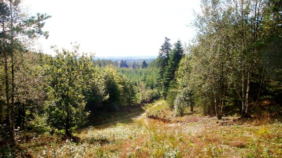 er en tur på kun 1,5 km i luftlinje, men landskabet er meget bakket, så